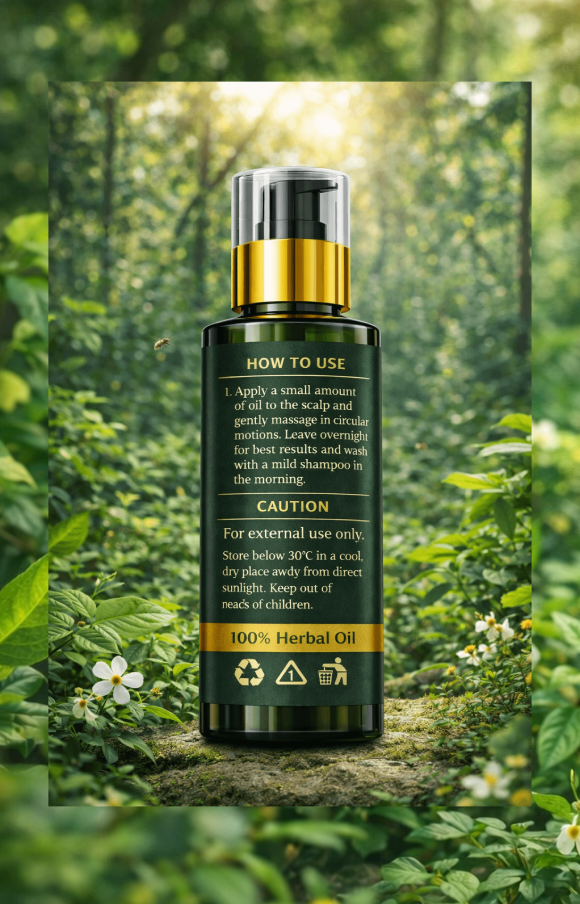 A lightweight herbal oil that helps reduce hair fall, strengthens and thickens hair, promotes healthier growth, and supports a clean, dandruff-free scalp.